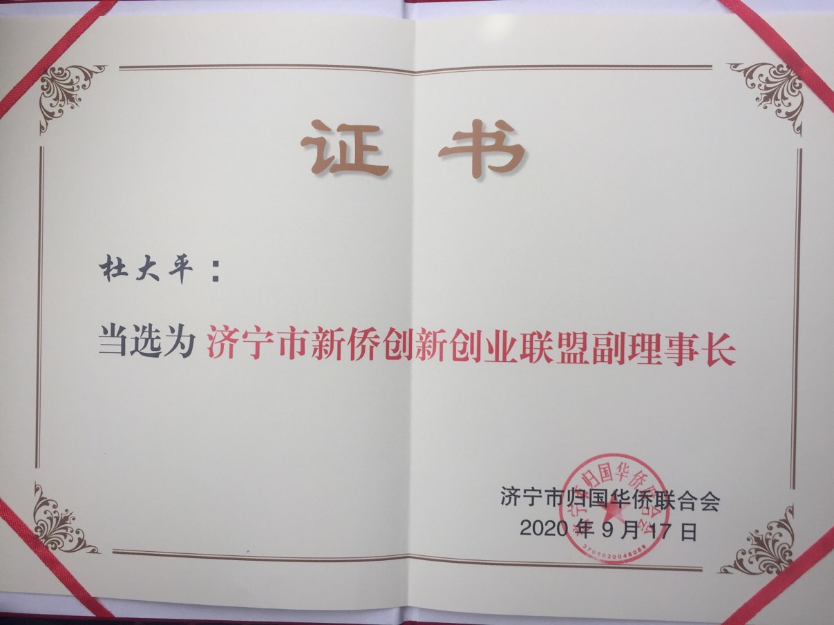 熱烈祝賀公司總經(jīng)理杜大平當(dāng)選為濟(jì)寧市僑創(chuàng)聯(lián)盟副理事長