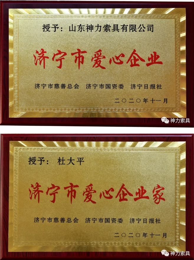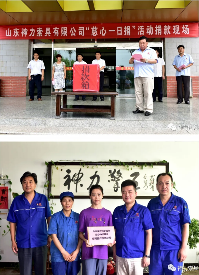 山東神力索具有限公司大力弘揚民族傳統(tǒng),秉承社會文明,慈心為人,善舉濟世。董事長杜亞中同志每年定時在公司內(nèi)組織開展“慈心一日捐”活動,親自到捐款現(xiàn)場做動員講話并捐助善款。董事長和總經(jīng)理還不定期參加各種捐款救助活動。