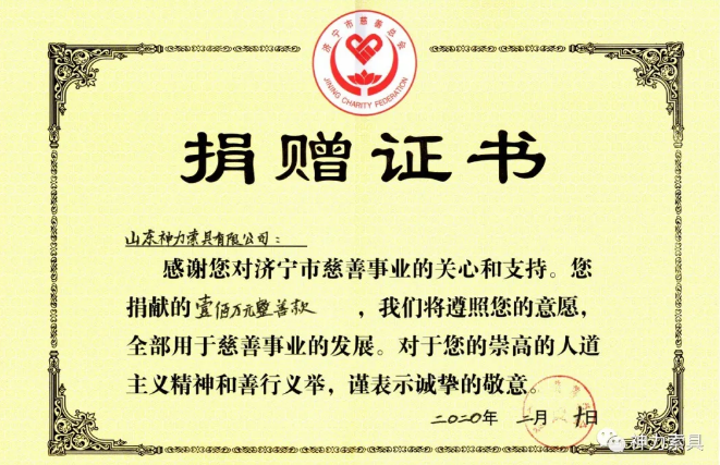 2020年新年伊始,一場突如其來的疫情席卷全國,新型冠狀病毒疫情牽動著億萬人的心。在此非常時刻,山東神力索具有限公司總經(jīng)理杜大平代表公司向濟寧市慈善總會捐款100萬元,以實際行動支援湖北、武漢疫情防控。