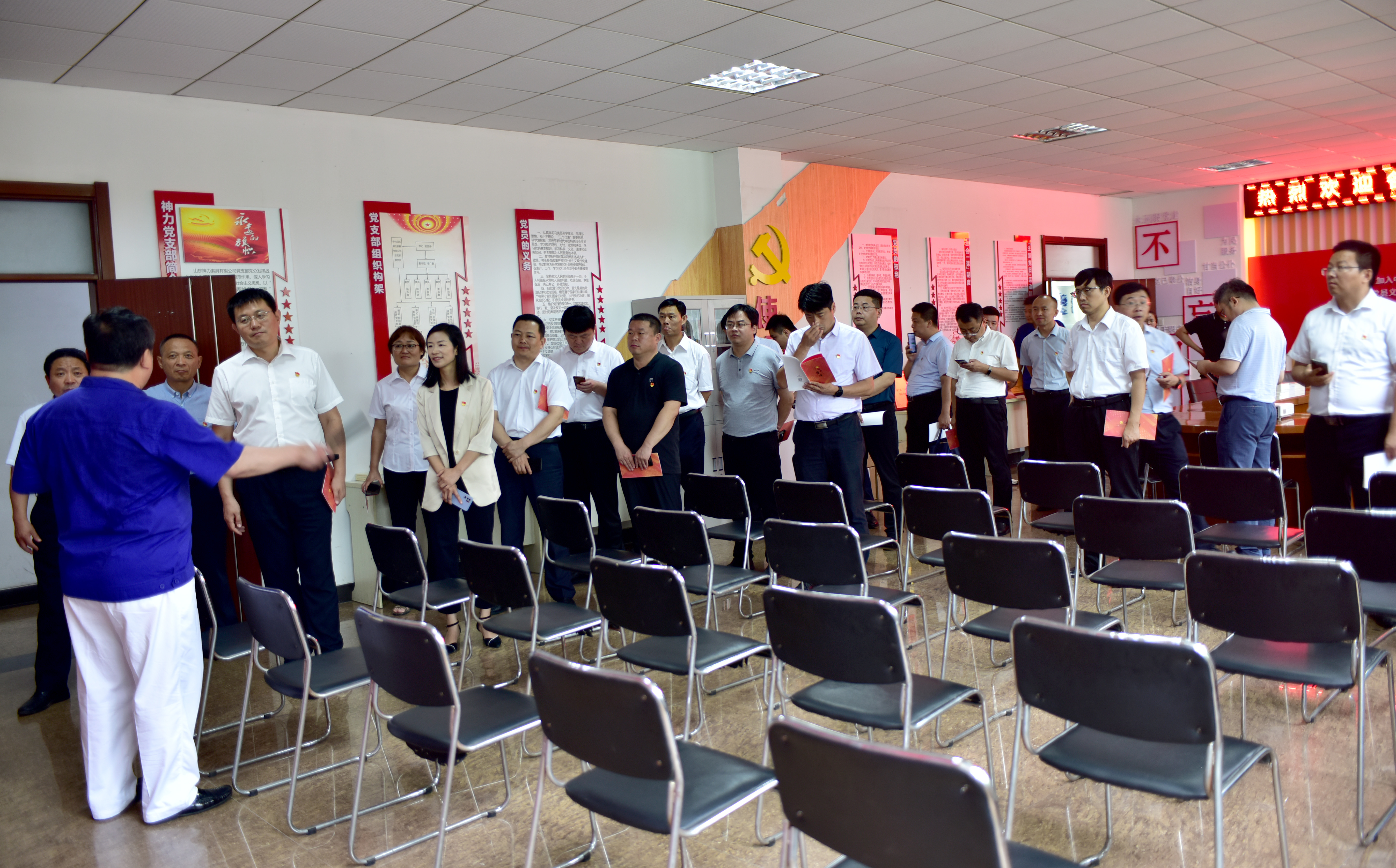 隨后,觀摩團(tuán)成員移步來(lái)到黨建活動(dòng)室,杜亞中書記對(duì)觀摩團(tuán)成員詳細(xì)講解了我公司黨支部在深入學(xué)習(xí)貫徹習(xí)近平新時(shí)代中國(guó)特色社會(huì)主義思想指導(dǎo)下,結(jié)合公司自身特點(diǎn),找準(zhǔn)企業(yè)定位,走“堅(jiān)持黨建帶動(dòng)群建,群建服務(wù)黨建”之路,堅(jiān)持按照“黨建與生產(chǎn)經(jīng)營(yíng)相結(jié)合、黨建與技改項(xiàng)目相結(jié)合、黨建與創(chuàng)新創(chuàng)效相結(jié)合、黨建與企業(yè)文化相結(jié)合、黨建與人才建設(shè)相結(jié)合和黨建與群團(tuán)建設(shè)相結(jié)合的“六結(jié)合”黨建工作法。