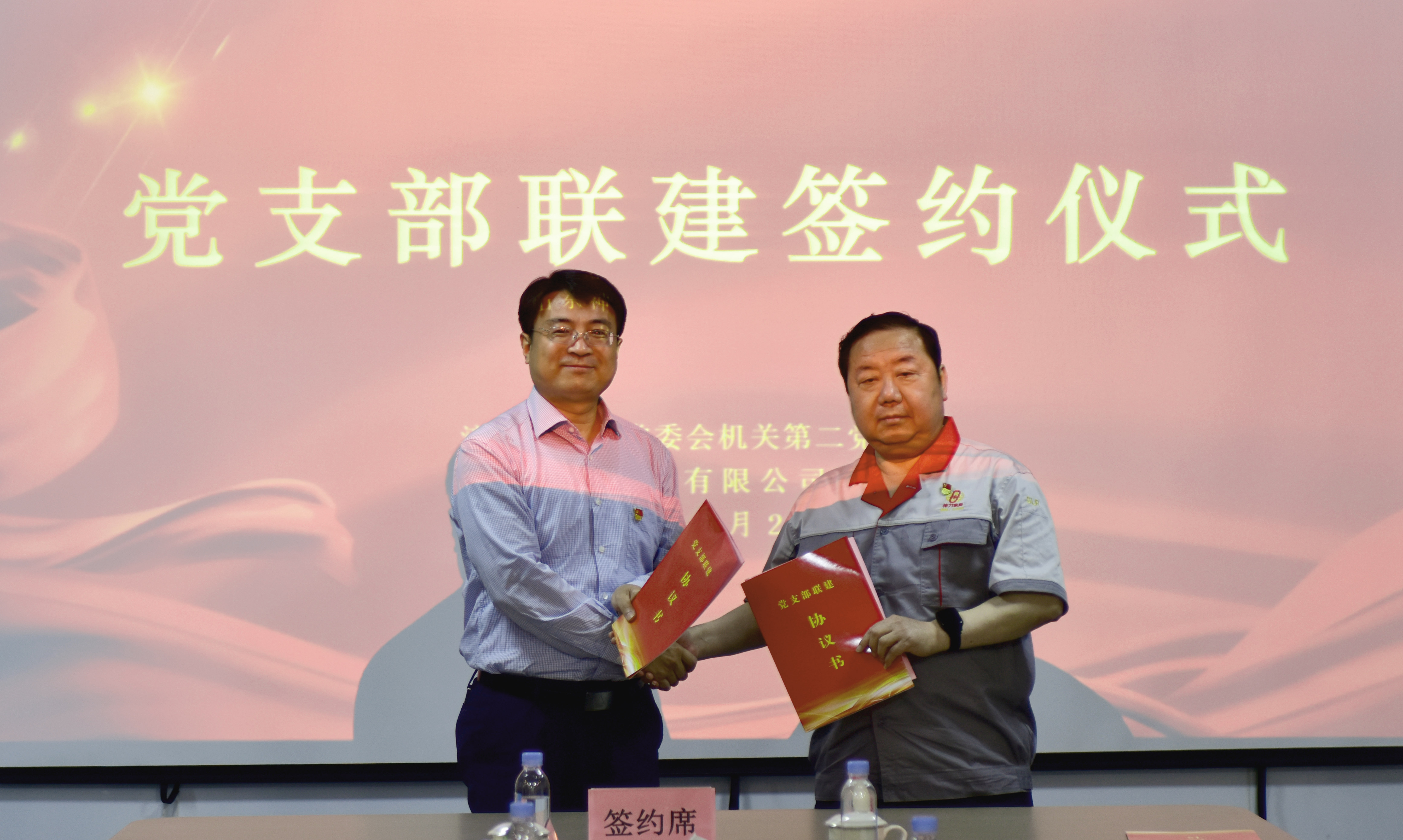 本次會議由市人大常委會副秘書長、辦公室主任孟青松同志主持,市人大常委會法工委綜合科科長張偉同志宣讀黨支部聯(lián)建協(xié)議書。市人大常委會法工委副主任郝永偉同志與神力索具董事長杜亞中同志簽署黨支部聯(lián)建協(xié)議書。