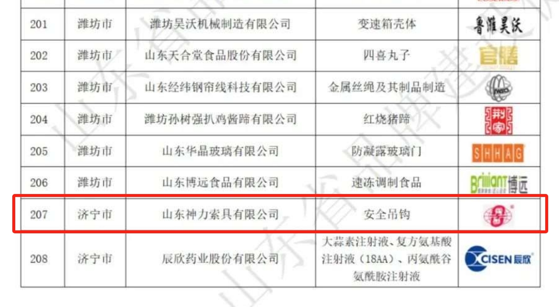 根據(jù)《山東知名品牌認(rèn)定管理辦法》的規(guī)定,遵循科學(xué)、客觀、公開、公平、公正、自愿、不收費的原則,經(jīng)組織申報、資格審查、大數(shù)據(jù)信息挖掘、信息化系統(tǒng)平臺評審、專家評審、認(rèn)定專家委員會審議等工作程序,神力索具安全吊鉤榜上有名,光榮入選“山東知名品牌(產(chǎn)品)認(rèn)定名單”。