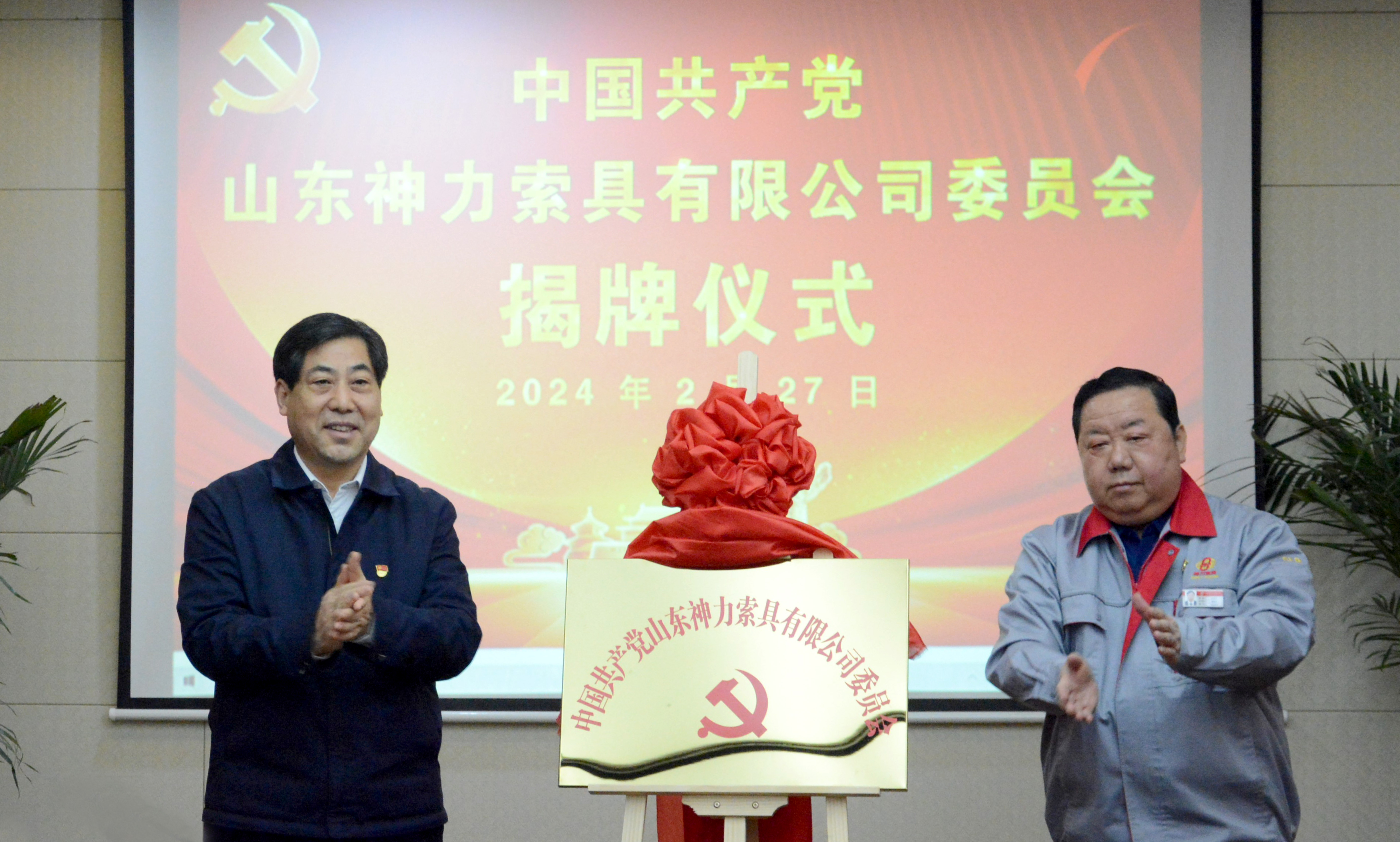 園區(qū)綜合黨委書記柳軍宣讀《關(guān)于成立山東神力索具有限公司黨委的批復(fù)》。區(qū)黨工委書記、管委會主任劉曉林與神力索具黨委書記杜亞中共同為“中國共產(chǎn)黨山東神力索具有限公司委員會”揭牌!