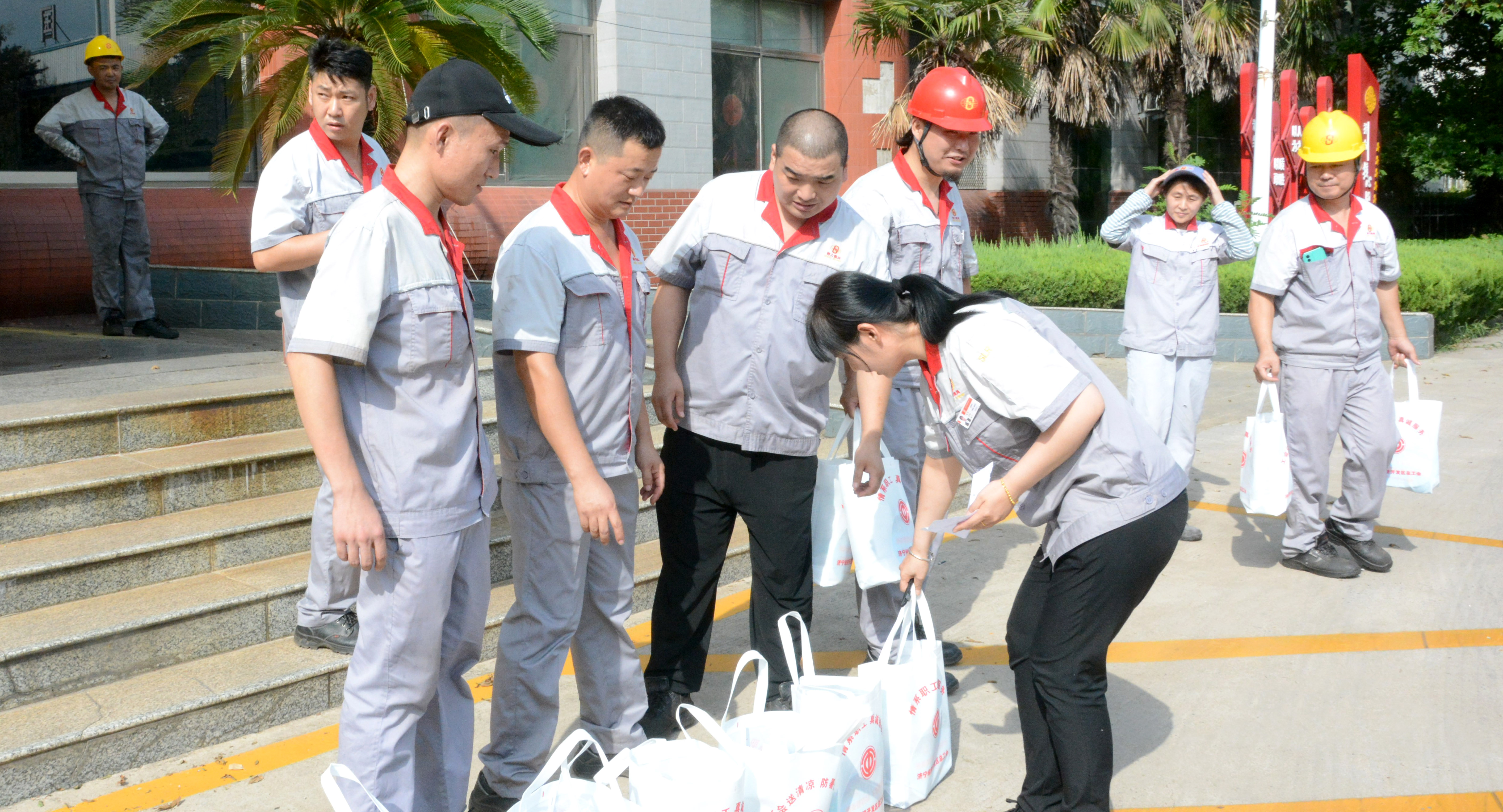 為更好保障職工身體健康,平安度夏,9月2日,神力索具聯(lián)合濟寧經(jīng)濟開發(fā)區(qū)總工會開展“工會送清涼 防暑保安康”主題夏季慰問活動,深入生產(chǎn)一線,將絲絲清涼送到職工身邊。